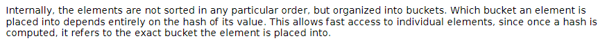 내부적으로 요소는 특정 순서로 정렬되지 않고 버킷으로 구성됩니다. 요소가 배치되는 버킷은 전적으로 해당 값의 해시에 따라 다릅니다. 해시가 계산되면 요소가 배치된 정확한 버킷을 참조하므로 개별 요소에 빠르게 액세스할 수 있습니다.