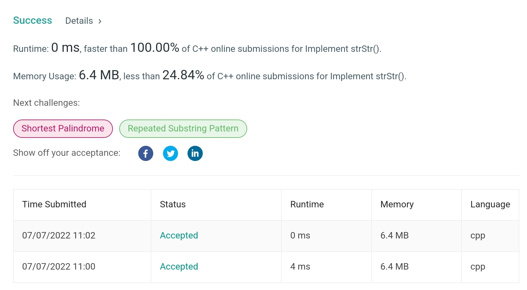 이 문제는 간단하게 풀 수 있다 haystack을 len을 길이 만큼씩 조사하여 needle과 같은 값이 있는지 찾아 주기만 하면된다