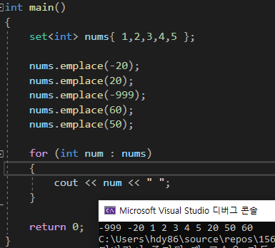 std::set유형의 고유한 개체의 정렬된 집합을 포함하는 연관 컨테이너입니다 Key. 정렬은 키 비교 기능 Compare 를 사용하여 수행됩니다 . 검색, 제거 및 삽입 작업에는 로그 복잡성이 있습니다. 세트는 일반적으로 레드-블랙 트리 로 구현됩니다.