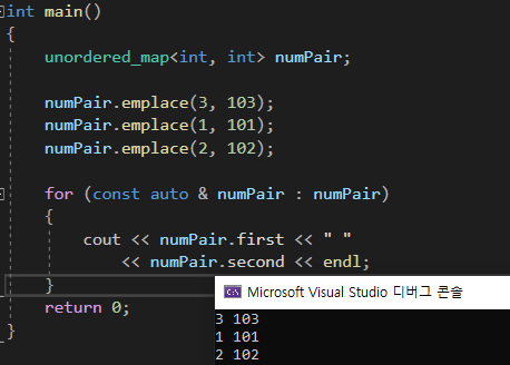 출력값을 보면 1에 101의 값을 2에 102의 값을 넣은 것을 확인 할 수 있다.